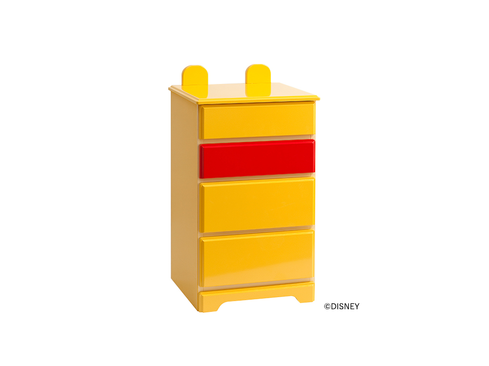 はちみつが大好きなくまのプーさんは、赤いベストと小さな耳がポイント、そして、プーさんの大親友、小さくて臆病なピグレットはピンク色と耳がとってもかわいいミニチェストです。