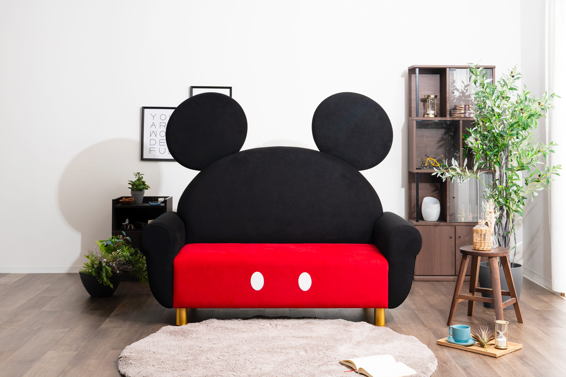 ミッキーマウスの大きな耳がポイントの豪華なソファです。